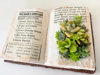 モルタル風ブック型鉢 ブック型のモルタルデコをしてみたくてチャレンジしました。 チマッチマ寄せして完成!!サイズ的には手帳サイズですが…スタイロフォームをブック型にして、最初モルタルでやってみたけどボッコボコで上手く行かなくて全部取ってデコボコベースでやり直しました。可愛い英文字筆記体のペーパーナプキンがあった