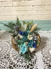 asa様 有難うございます。🤗クチナシの花をブルーでプリザ加工したので、全体をブルー系に、まとめてみました。ヾ(๑╹◡╹)ノ" 「は〜るよこい🤗幸せもこい🤗」って感じです😅