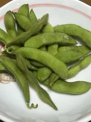 枝豆、試し採りしました 第一弾の枝豆、試しに採ってみました まだ粒は小さいですが枝豆となってました この枝豆は畑とのタイミングが合わなくて条件の良くないフェンスの近くに植えました でも何とか実をつけました もう数日してから収穫したいと思います