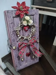ドアキャビネットアレンジ ドアキャビネットに先日作ったリースを飾って見ました!