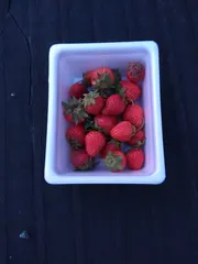 苺🍓の収穫 今日は少しまとまって収穫出来ました😊2個今晩のデザートにし残りはいつもお野菜を頂くご近所の農家さんにお裾分けしました😉💕🎵