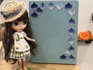 エコな収納ケース&ドール帽子♪ お煎餅の空き缶にグリーン系の壁紙とタイルシールを貼って収納ケースを作りました。中は仕切りで整理整頓、なのですがまだ仕切りは仕上がりませんでした。ドール用バッグや靴、ヘッドドレスを並べて保管する予定です。壁紙は切り売り80センチ、蓋の表裏、缶のサイドをぐるっと、そして中の底に壁紙を貼ってもまだあまりが