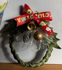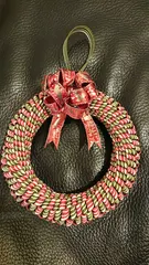 紙バンドのクリスマスリース🎄 紙バンドで作ったクリスマスリースです。ひたすら同じ作業の繰り返しで出来上がったものを丸くして出来上がり✨こちらはミニミニリース🎄