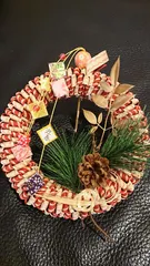 紙バンドのお正月飾り🎍 紙バンドのお正月飾り🎍です。作り方はクリスマスリース🎄と同じです。100均で飾りを調達✨年末年始は紙バンド飾りで過ごす我が家です😊