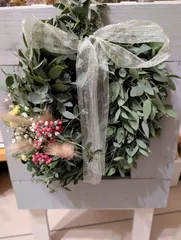 講座で、こんもりユーカリを使ったリースを作ってきました😄 一応完成したのですが、クリスマス用にアレンジしようと思います✨ リースの作り方を教わってきたので、また作りたいと思います😄