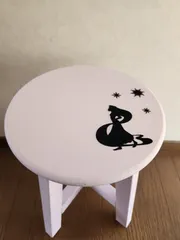 ミニカウンターチェアのアレンジ 天板にステンシルしたかったのですが他の小物で練習したら上手く出来なかった😖💦思いついてラプンツェルのシールがあったので貼って見ました☺️以外に素敵に仕上がりました✨