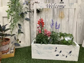 フラワートレイを作りました🌸スタッフさんが作った見本が、凄くステキで、色もステンシルもマネしました🥰見本を横に置きながら、汚しもやってみましたが、難しい💦ステンシルも、はみ出ましたー😱