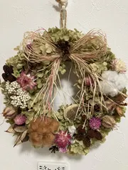 ぱふさん こんばんは♪ すご〜い‼️ お庭の材料でこんなに 素敵なナチュラルリースが 仕上がるなんて💓 花材が豊富でふんわりした 優しいリース素敵です💓