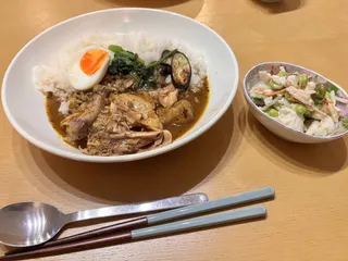 しょうしんさん、メンションありがとうございます😊 ほうれん草やナス(お庭から収穫なんて素敵✨✨)ゆで卵も半熟で、とっても彩り綺麗です❣️ サラダも添えて完璧ですね👍❤️❤️