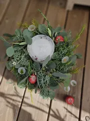 ブルーアイスの森林浴🎄 キャンドルとコニファーブルーアイスをお迎えしたので森林浴しながらの😅なんちゃってリース作り~お庭から、ユーカリ、メディカルティーツリー、?針葉樹、グレビレアロックワイヤーで固定するのではなく、器にキャンドルを置いて周りにグリーンを置いただけですがクリスマスっぽくなりました🎄嬉しい🥰