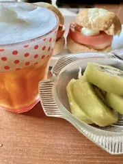 夏のコーヒー時間 ランチ☕️ 今日のランチ アイスコーヒー☕️、ハムサンド、キウイ🥝 暑いのでアイスコーヒーに、コーヒーがカフェインレスだったので、少し薄めです😆100均で揃えてみました😆