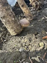 高級椎茸、穫れた 2年前にトライした椎茸栽培。去年一個。二夏経過後の今日一個の収穫。一本だけ購入した菌付きの原木、残りは自宅で伐採した木なんです。・菌付き原木2,500円ほど・椎茸菌3パックで3,000円ほど・ノシロなど2,000ほど合計7,500円今のところ一個当たり3,250円の高級椎茸です😆