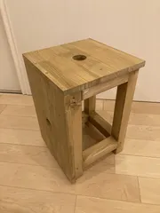 図工椅子 図工椅子作りました!丸穴をくり抜くのが初めてで、難しかったですが、丁寧に教えてくれてなんとか出来ました!色もナチュラルに仕上げたので、ザ・図工椅子になりました!