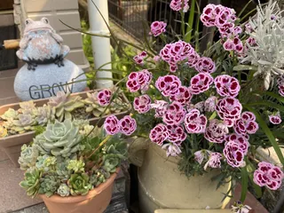 蓋模様の入った可愛い撫子ですね❣️ 素敵な玄関先ディスプレイです😁🎶🎶🎶
