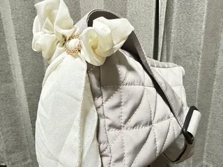 とある通販サイトで購入したバック💦到着して開けてみたらバックの端に黄色いシミがあり👉👈返品しようとしたら…送料がこちらもちでそれも高いので返品諦めました🥲そして100均で髪留め用飾りゴムを購入して…シミが目立たないように取り付けて簡単アレンジして使う事に決定😓使えそうなので…まぁ〜いっか🎶