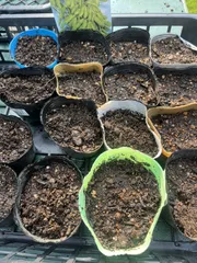 枝豆、第3弾、仕切り直し 今年は枝豆の収穫をずらすために3回に分けて種を蒔いています しかし、先日第3弾の種を蒔いたポットを転んで籠ごとひっくり返してしまいました そのため遅ればせながら本日種を購入しポットに蒔きました😊気温が上がっている今は夕方の種まきが良いそうです 今年は気温が上がりすぎて種を蒔くには遅いかもしれませんが