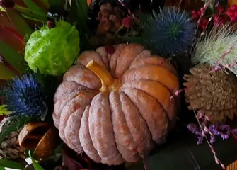 ハロウィンキャンペーン2022【かぼちゃのジェームスのハロウィン・アレンジメント】 またまたこんばんは~😚ちょっと作品溜まってるので、駆け足で行きますね〜🤭💦先週末、またもや、お気に入りのお花屋さんでWSに参加しましたよ🎃ハロウィンアレンジメント。まー、今回もまたモリモリにご用意してくださって、すごいこと😆💕💕「やあ、皆さん初めまして。かぼちゃのジェームスです🎃」お花にはよく品種名