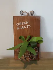 コウモリラン ネザーランド カインズの園芸 158円コーナーにコウモリランがあると聞き 購入 板付と苔玉の中間の様なものを作ってみました☺️板は塗装してあったものを利用苔玉を入れる場所をソフトワイヤーで作りました(不器用なので下手です)水苔の当たる所には通気をするために 下穴を また板が直接壁につかないように 滑り止