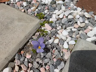 玄関前の隙間にこぼれ種からのビオラを発見。Σ(゚∀゚ノ)ノキャーかわいい😍
