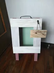 レシピみてフラワースタンドとフレーム スクエアのレシピ見てフラワースタンドとフレーム作りました♫取っ手とフックはアレンジ色も4色使いました♫