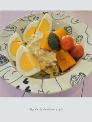 かぼちゃとブロッコリーの茎のサラダ♪ ■材料(全て適宜)①レンチンかぼちゃ②茹でブロッコリーの茎③茹でタマゴ④ミニトマト⑤瓶詰めタルタルソース マヨネーズ いちじくドレッシング ■作り方①をサイコロ状に切ります②をみじん切りにします③を4等分します⑤を混ぜ合わせます ①②⑤を混ぜ合わせてお皿に盛り③と④を盛り付けます