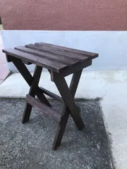丁度良い大きさなので、室内用と庭用にとWSに2回参加しました。1回目はWSに参加するようなってすぐの頃で慣れなくて脚がガタついてました。使いやすいので再チャレンジ。少しの寸法の違いなんかでガタつきがでちゃうので、椅子やテーブルは結構難しいと思った作品です。