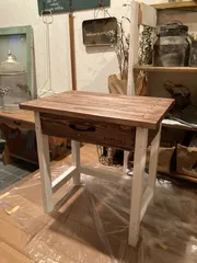 ミニテーブル 丁度良い大きさなので、室内用と庭用にとWSに2回参加しました。1回目はWSに参加するようなってすぐの頃で慣れなくて脚がガタついてました。使いやすいので再チャレンジ。少しの寸法の違いなんかでガタつきがでちゃうので、椅子やテーブルは結構難しいと思った作品です。