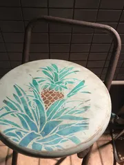 スタンプー 以前使って居たカウンター用椅子雰囲気を変えてみることにしました 初めに木の部分のニスを落とすため削るました 椅子全体にプライマーを塗りました 乾いたら座面にカインズの塗料を塗って鉄の部分にはアイアンペイントを2色重ねてスポンジでトントン