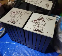コメントありがとうございます😊 トラッシュカバーお気に入りで今までにWSで6個作りました😂 そのうちの4個にフタを付けてます ステンシルほめてもらえて嬉しいです❤️