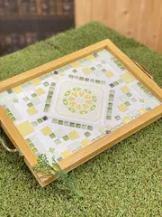 モザイクタイルと木材でカフェトレイ
