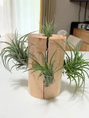 コメントありがとうございます♪ 本来は木に着生してる植物なのでこうした方が根付いて安定して育つみたいです。 本当は素敵な流木を使いたかったのですけど100均で使えそうなのを見つけたのでやってみました。 これは割っただけの木なのでささくれは削りました。 木のくぼみに着生させるといいみたいです。