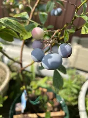 ブルーベリー3種 待望の収穫😆左上から、ウッダード、パウダーブルー、ティフブルー ウッダードは大粒です!なんと2cmくらいありました😳