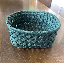 クラフトバンドのカゴ🧺落ち着いたグリーンが素敵ですね☺️✨ フルーツ沢山入れられますね🍎🍊🍌👏