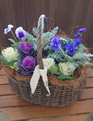 可愛いカゴの寄植え🧺 Greenワークショップで、可愛いカゴの寄植えを作ってきました🧺まだまだ夏のお花も元気ですが、葉牡丹を使った寄植えで、季節を感じる事ができましたこれからの成長が楽しみです🌼