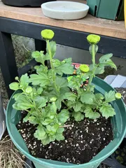 菊 夏に枯れかかって、スリット鉢に植え替えて元気になり、もうすぐ咲きそうな菊です。
