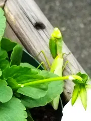 庭で生まれた、カマキリさん。 毎年、庭で生まれるカマキリさん。11月の後半まで庭のあちらこちらで、生活します。可愛い❤