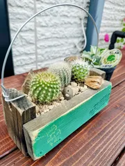 ぴよが増えてる🤣🤣🤣イベントにてサボ寄せをしてきました。いつもお世話になっている園芸屋さんのサボ寄せWS。閉場近かったので駆け足参加😅サボテン相談会もあるということでうちの20年近く育てているサボテンの相談に行きました。太陽に向かってどう置いても斜めってきます💦元は小さいサボテン。現在根元から20c