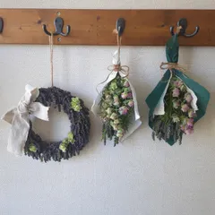 ラベンダーの剪定ついでに… ラベンダーの剪定をしたので、初めてラベンダー(と、オレガノ)のリースを作ってみました!楽しかったけど、バランス良く作るのはなかなか難しいですね😂 暑いせいか、ラベンダーがふにゃんとしてしまったのですが…水にでも浸けてシャキッとさせてから作った方が良かったのかなぁ?でも、最終的にはドライにな