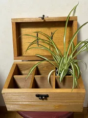 薬箱風箱✨ 今年初めてかも‼️木工diyワークショップに行ってきました😊薬箱風箱!あっ薬箱でなくてもいいのね場所も取らず、何を入れるかは自由🤭私は、小さな植物を入れてみました🤭オリヅルランを😊 作業は隠し釘を使って箱を作る箱が小さいので難しさはありました苦戦したのは隠し釘の頭を落とすところ!なんであん