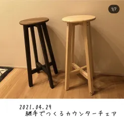 継手でつくるカウンターチェア 2021.04.29 カインズのワークショップで作った継手でつくるカウンターチェア を復習を兼ねて2脚目作成しました。ワークショップで教えてもらう細かい工程には全部意味があるんだな〜と、はしょって失敗して気付くおバカな私😅 でも、いいんです。🕶失敗して学ぶタイプです。ガタガタなる椅子になり