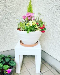 ミニベンチに寄せ植えを乗せて 4回目のワークショップ参加でミニベンチを作りました。ガーデンシクラメンの寄せ植えもカインズのワークショップで作ったので、ちょうどそれを置く台が欲しかったので早速使いました。ヾ(๑╹◡╹)ノ"ミニベンチは角材が太くドリルでの穴あけが大変でした。次回はもう少し上手になりたいと思います。