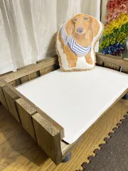 脚付きペットベッド 2回目のワークショップで、脚付きペットベッドを作りました。重さもありしっかりした作りです。自宅に持ち帰り早速ウチの子クッションを置いてみました。ヾ(๑╹◡╹)ノ"