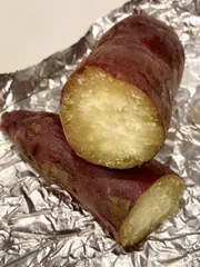 焼き芋 ■材料さつまいも 2本塩 適宜水■作り方よく洗ったさつまいもを塩水に1時間ほど付けておく。塩水はしょっぱいくらいと感じるくらい。黒いアルミホイルに包んでトースターで220℃ 20〜30分焼きます。時々向きを変えて。竹串刺して柔らかくなっていたら出来上がり。■工夫ポイントさつまいもが入るボールがなかっ