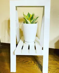 ありがとうキャンペーン 今日はいつもとは違うカインズまで、遠征してフラワースタンドを作ってきました。屋外用にペイントしましたが、フラワーフレームを作るまでは部屋に置いて、サンスベリアを飾っておく事にしました。