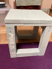 とても活躍してくれそうなミニベンチ完成しました! お隣の方のペイントをお借りして、今日の日付けを入れました。とっても記念になります。