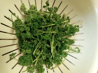 パセリの保存 何時でも要る分量だけ使用できます。岡山県美作市、道の駅彩菜茶屋で沢山の葉物に、野菜仕入れてきました。柔らかいパセリ見つけ電子レンジでチンして乾燥パセリにして冷凍しました。