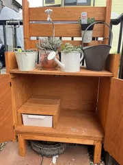 お庭に置いてある収納庫に、小物を入れる引き出しを作ってみました。 引き出しは、100均カゴを使用して周りの棚を1✖️4を使ってカインズさんでカットしてもらい簡単DIYをお家で作ってみました。 これで、より使いやすくなりました。