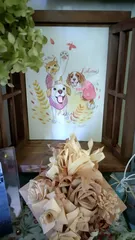 窓型ウォールラックを額にする 随分前にWSで作った窓型ウォールラック🥰🤗🥰サイズがピッタリなのを確認して、絵が出来上がるのを待っていました🤗🥰🤗仏壇は実家にあるので、我が家にはもっと身近におしゃれにインテリアの一部になるよう考えていました。ただ写真を飾っていたのですが、なんだかね~でした。😥😢😥今年の春に、大好きなマーティンゆう