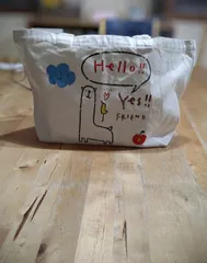 長男からお弁当依頼あったものの、ちょうどいい大きさのランチバッグがなくて…。次女が自分のものを譲ってくれました😊でも今度は次女のランチバッグがない😳作る時間がなかったのでうちにあった未使用の手提げを間に合わせに😅でも楽しいランチタイムを過ごしてもらいたいので、お詫びにステンシルしておめかし🥰完全にわ