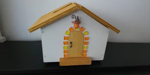 おうち型ティッシュケース(アレンジ) 先日、WSで作ったhttps://diy-square.cainz.com/announcements/5vez8qzish2qw1viアレンジしてガラスタイルや灯りをつけてみました底には丸いプッシュピン📍をつけて脚にしています 裏はベランダ付きにして欲しいと注文があったので大きいのつけて